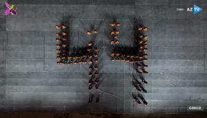 Səhnədə qara qüvvələrin Azərbaycanın müxtəlif bölgələrini işğal etməsi simvolik olaraq əks olunub. Arenada yer alan xarıbülbül çiçəyi düşmən tərəfindən tapdanır, bununla da xalqımızın üzləşdiyi ağrı-acı və işğal illərinin iztirabları təsvir edilir. Ardınca isə 44 günlük Vətən müharibəsində göstərilən rəşadət, qəhrəmanlıq və mübarizə canlandırılır. “Dəmir yumruq” rəmzinin səhnədə təqdim olunması isə düşmənin məhv edilməsini və tapdaq altında qalmış torpaqlarımızın azadlığının bərpa etməsini özündə əks edirib.