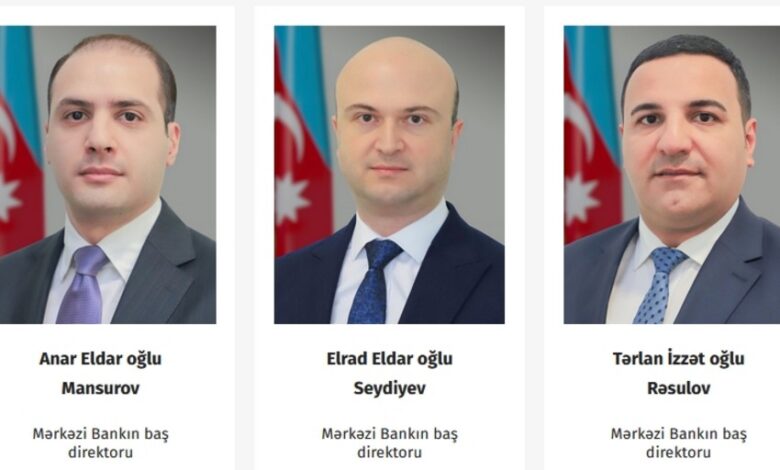 Azərbaycan Mərkəzi Bankına daha üç yeni baş direktor təyin edilib