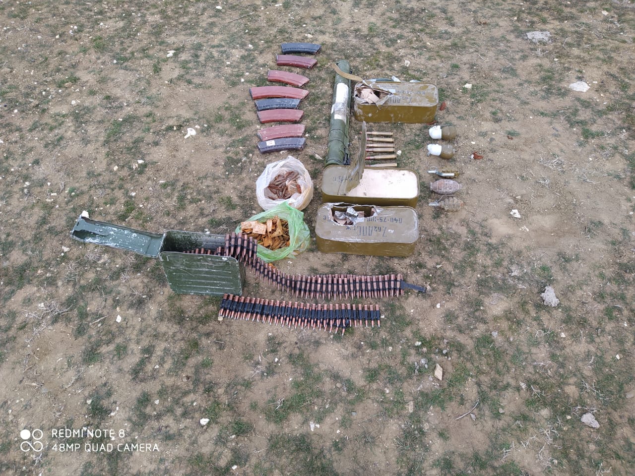 Dərhal RPŞ-nin əməkdaşları hadisə yerinə gələrək müvafiq tədbirlər həyata keçirliblər. Araşdırmalar zamanı oradan 1 ədəd  “Muxa” markalı  RPQ-18 qumbaraatan, 1 ədəd 60 mm-lik minaatan mərmisi,  2 ədəd alıştırıcısı üzərində olan, 1 ədəd alıştırıcısız “F-1”, 1 ədəd “PRO”, 1 ədəd “RPN” əl qumbaraları, ümumilikdə 1632 ədəd müxtəlif kalibirli patron, 4 ədəd müxtəlif silahlara məxsus avtomat darağı və sandıqlar aşkar edilərək götürülüb.