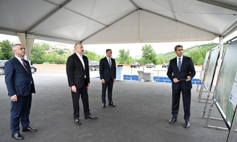İlham Əliyev Xankəndi Dəmir Yolu və Avtovağzal Kompleksinin təməlini qoyub