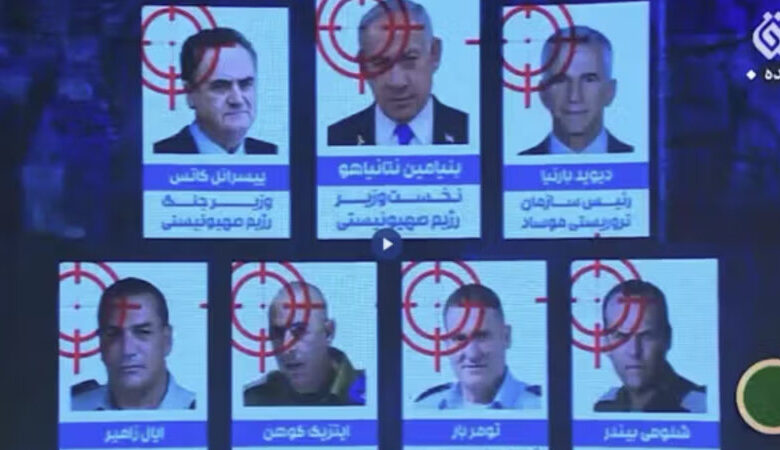 Kanal İsrail Baş naziri Benyamin Netanyahu, MOSSAD rəhbəri David Barnea, müdafiə naziri İsrael Kats, Silahlı Qüvvələrin Baş Qərargah rəisi Eyal Zamir, Hərbi Hava Qüvvələrinin komandanı Tomer Bar, Hərbi Kəşfiyyat İdarəsinin rəisi Şlomi Binder və Müdafiə Qüvvələrinin Əməliyyatlar İdarəsinin rəisi Yitzak Koxenin şəkillərini hədəf işarəsi ilə yayımlayıb.