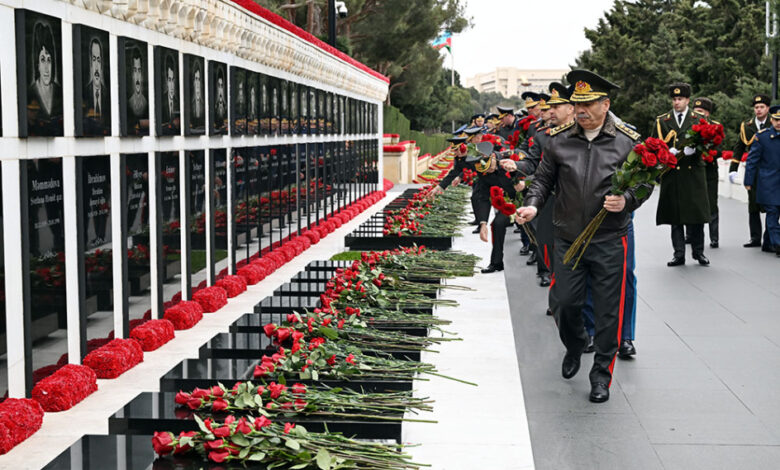 Müdafiə naziri general-polkovnik Zakir Həsənov və nazirliyin digər rəhbər işçiləri 20 Yanvar – Ümumxalq Hüzn Günü ərəfəsində Şəhidlər xiyabanını ziyarət ediblər.