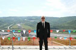 Prezident İlham Əliyev Bakı-Qəbələ avtomobil yolunun Muğanlı-İsmayıllı-Qəbələ hissəsində görülən işlərlə tanış oldu