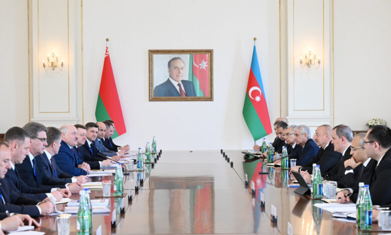 Prezident İlham Əliyevin Prezident Aleksandr Lukaşenko ilə geniş tərkibdə görüşü keçirilib