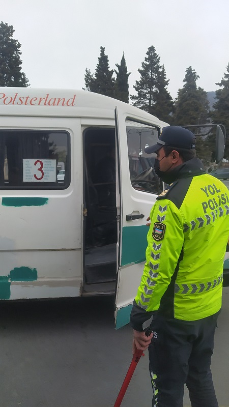 Dövlət Yol Polisi Bölməsinin əməkdaşları tərəfindən isə ictimai nəqliyyatda tənəffüs yollarını qoruyan fərdi vasitələrdən istifadə etməyən sərnişin və sürücülər aşkarlanıb, onlarla izahedici söhbətlər aparılıb. Həmçinin, COVID-19 pasportu olmadan sərnişindaşıma fəaliyyəti ilə məşğul olan, taksilərdə şəffaf arakəsmələr quraşdırmayan sürücülər saxlanılıb. Həmin şəxslərin barəsində İnzibati Xətalar Məcəlləsinin müvafiq maddəsi ilə protokol tərtib edilib.