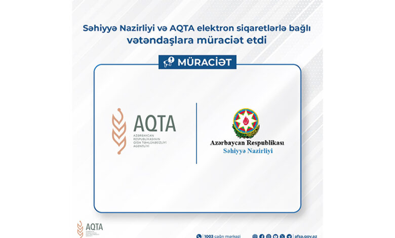 Səhiyyə Nazirliyi və Azərbaycan Qida Təhlükəsizliyi Agentliyi elektron siqaretlərlə bağlı vətəndaşlara müraciət edib.