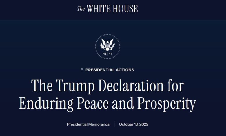Trampın sülh və rifah bəyannaməsi Ağ Evin saytında dərc olundu