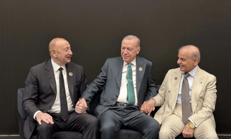 Polise.az Musavat.com-a istinadən xəbər verir ki, Azərbaycan Respublikasının Prezidenti İlham Əliyev Antalya Diplomatiya Forumu çərçivəsində türkiyəli həmkarı Rəcəb Tayyib Ərdoğan və Pakistanın Baş naziri Məhəmməd Şahbaz Şəriflə bir araya gəlib.