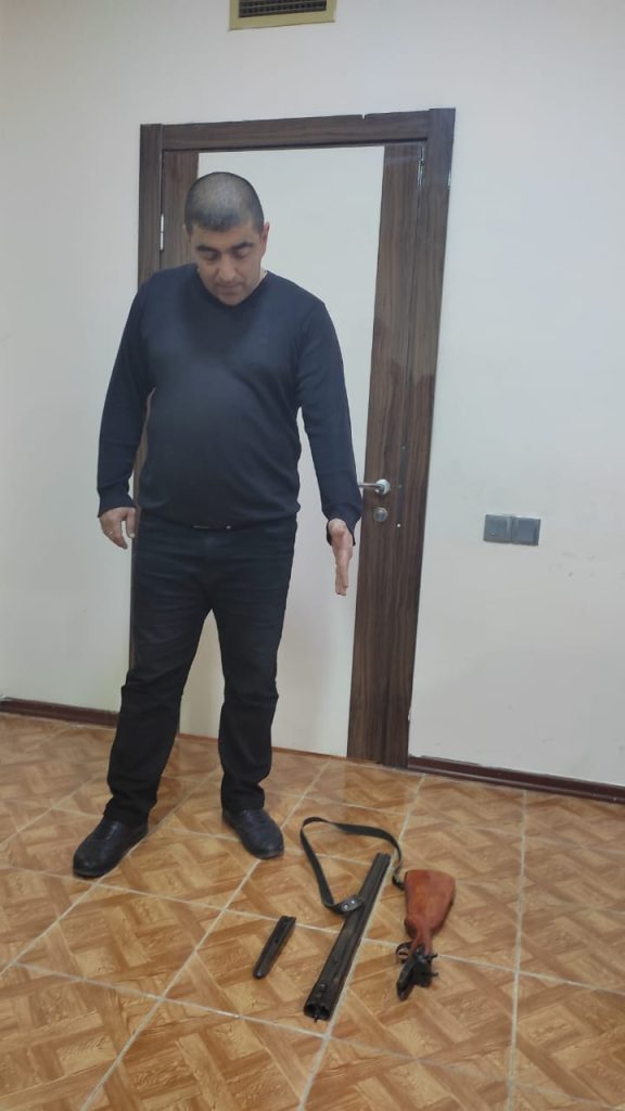 DİN-in Mətbuat Xidmətinin Şəki regional qrupundan polise.az-a verilən məlumata görə, keçirilən tədbir zamanı şəhər sakini Abdulla Durmuşovdan müvafiq sənədləri olmayan “İJ” markalı qoşalülə ov tüfəngi götürülüb.